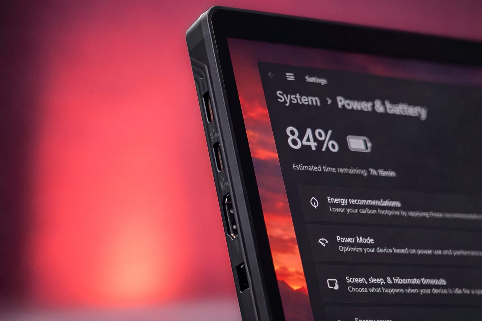 Damit lassen sich externe Monitore, Massenspeicher oder Peripheriegeräte problemlos anschließen. Gerade HDMI in voller Größe bleibt in dieser Geräteklasse keine Selbstverständlichkeit und erhöht die Alltagstauglichkeit im mobilen Arbeitsumfeld deutlich.
