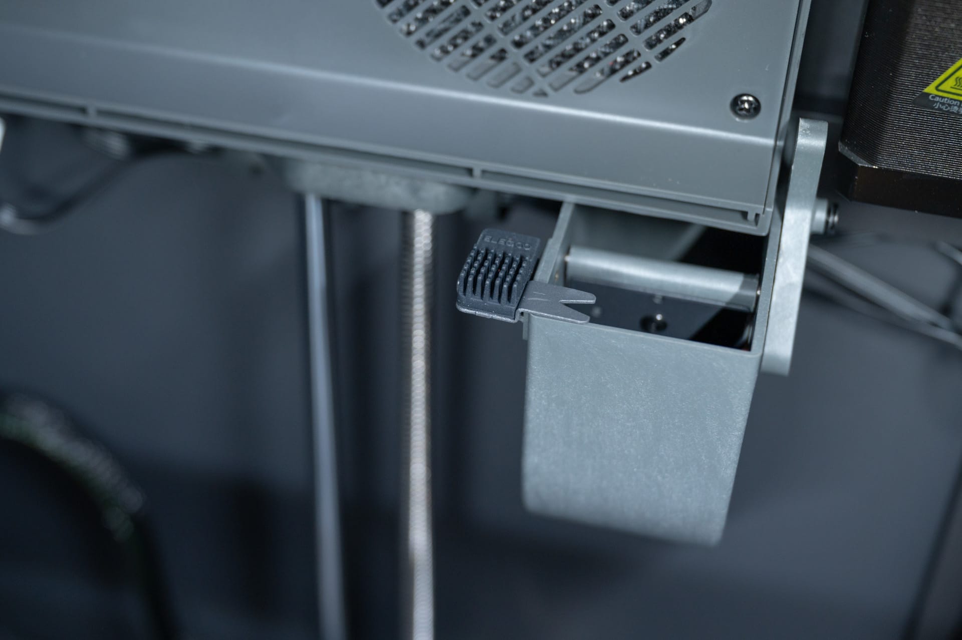 Die Filamentführung ist angenehm direkt, sodass das Material ohne Widerstand in den Extruder greift. Ein kleines, aber hilfreiches Detail ist die kurze Animation, die zeigt, wie der Filamentpfad verläuft und wo das Material eingelegt werden muss. Gerade Nutzer, die erstmals mit einem Direktantrieb arbeiten, profitieren davon.