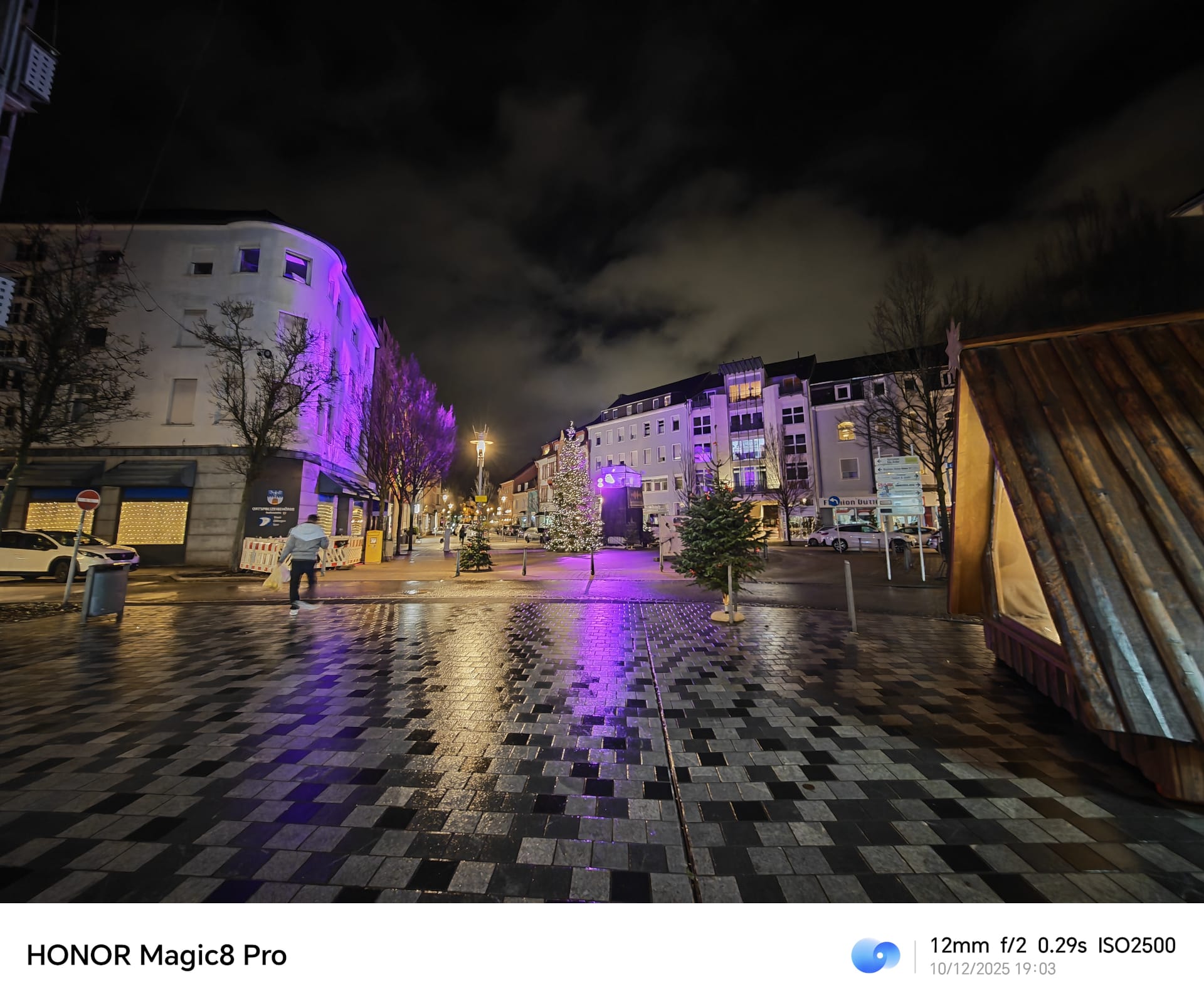 Bei wenig Licht spielt HONOR seine KI-Karte besonders offensiv aus. Die Hauptkamera liefert bereits ohne KI sehr gute Nachtaufnahmen mit sauberer Belichtung, kräftigen Farben und ordentlicher Detailzeichnung. Aktiviert man den KI-Nachtmodus, werden Texturen deutlich klarer gezeichnet. Das geschieht allerdings auf Kosten der Natürlichkeit, weshalb die Aufnahmen teilweise gekünstelt erscheinen.