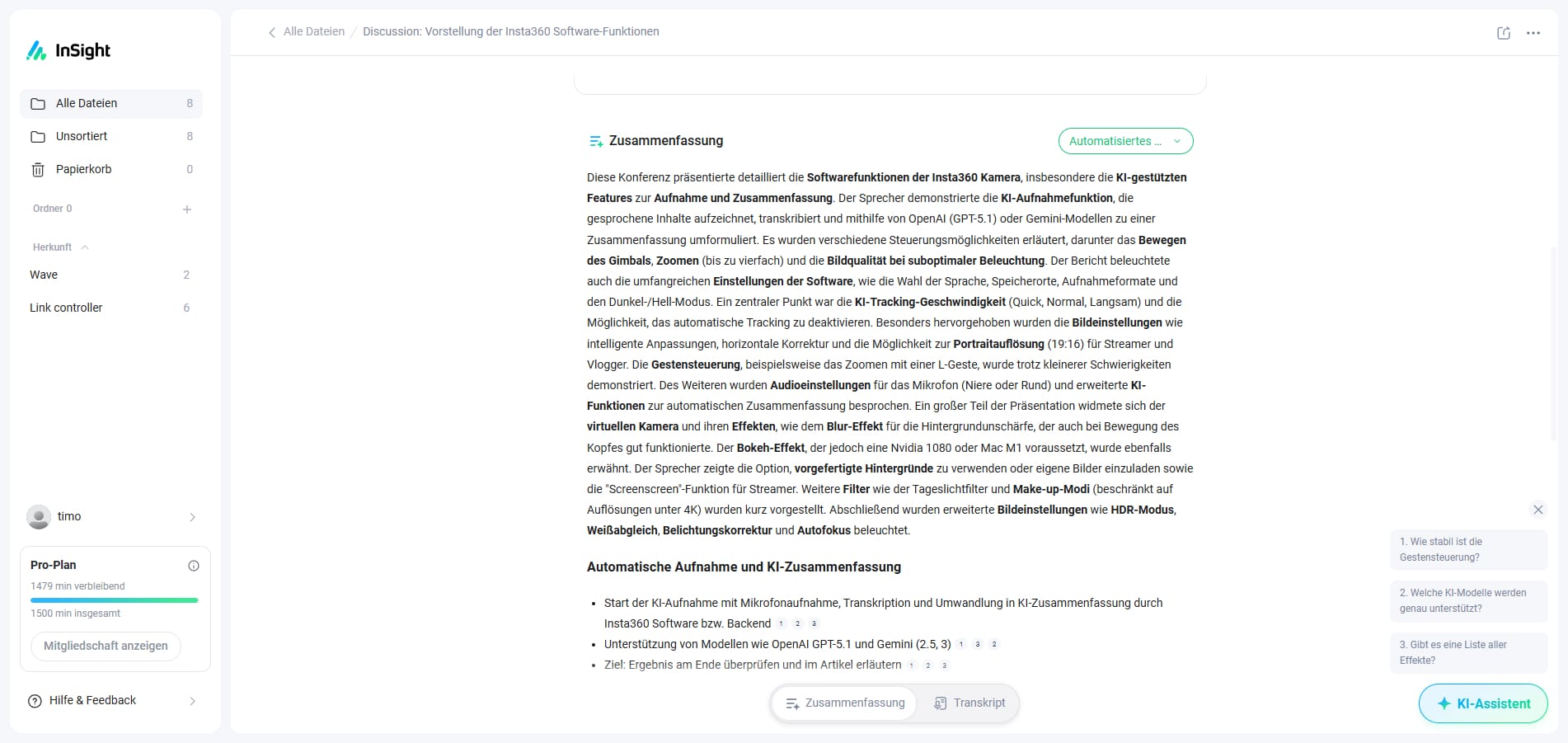 KI-Aufnahme & Transkription mit Insta360 InSight