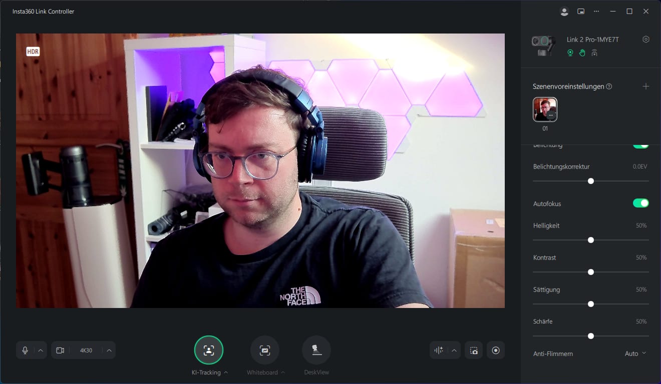 Über den Insta360 Link Controller lassen sich Bild, Ton und Tracking detailliert konfigurieren.