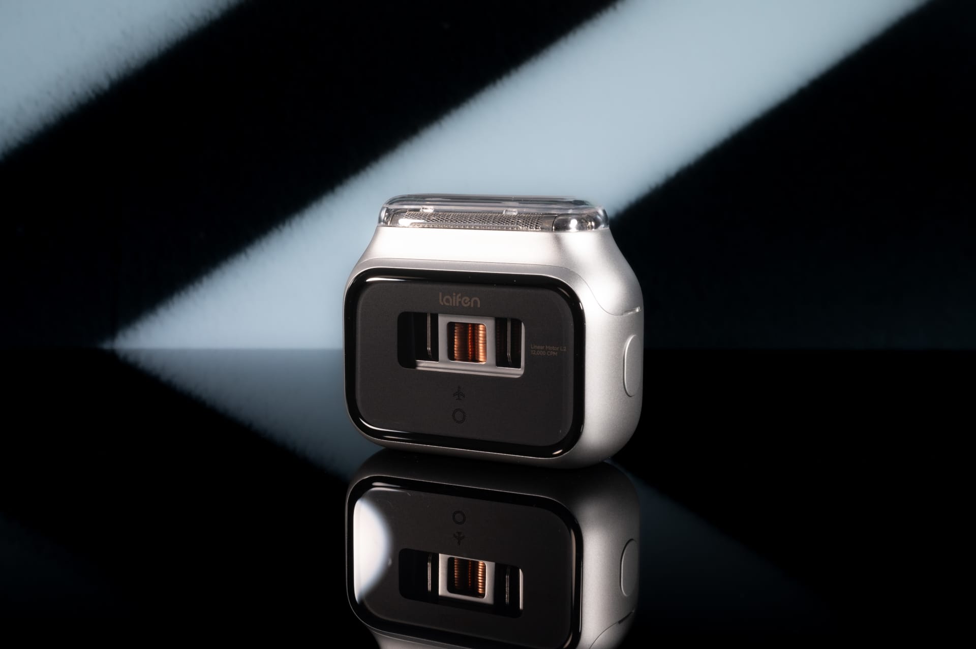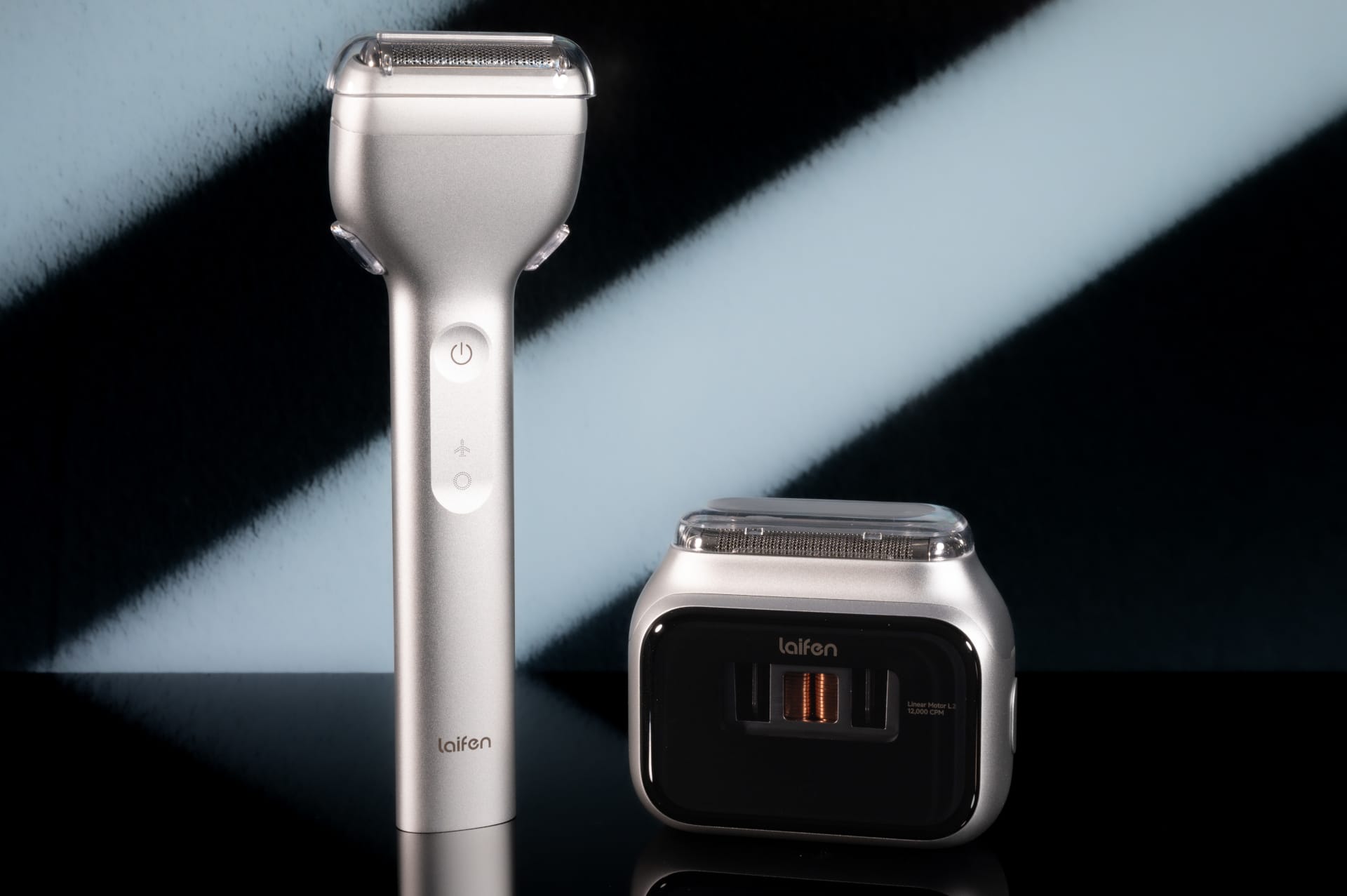 Der Laifen P3 Pro ist dagegen ein anderes Kaliber. Er nutzt zwei Motoren mit ebenfalls je 12.000 Bewegungen pro Minute, die drei federnd gelagerte Klingen antreiben. Dadurch hat er spürbar mehr Kraft und bearbeitet größere Flächen schneller. Die äußeren Folien erfassen kurze Haare, während die mittlere Trimmerklinge längere Barthaare kappt. Das Zusammenspiel sorgt für eine gleichmäßige, gründliche Rasur, selbst bei dichterem Bartwuchs. Trotz der Power bleibt der P3 Pro angenehm leise. Sein tiefes, gleichmäßiges Brummen wirkt hochwertig und ruhig. Ein durchaus angenehmer Kontrast zu vielen herkömmlichen Rasierern, die deutlich lauter arbeiten.