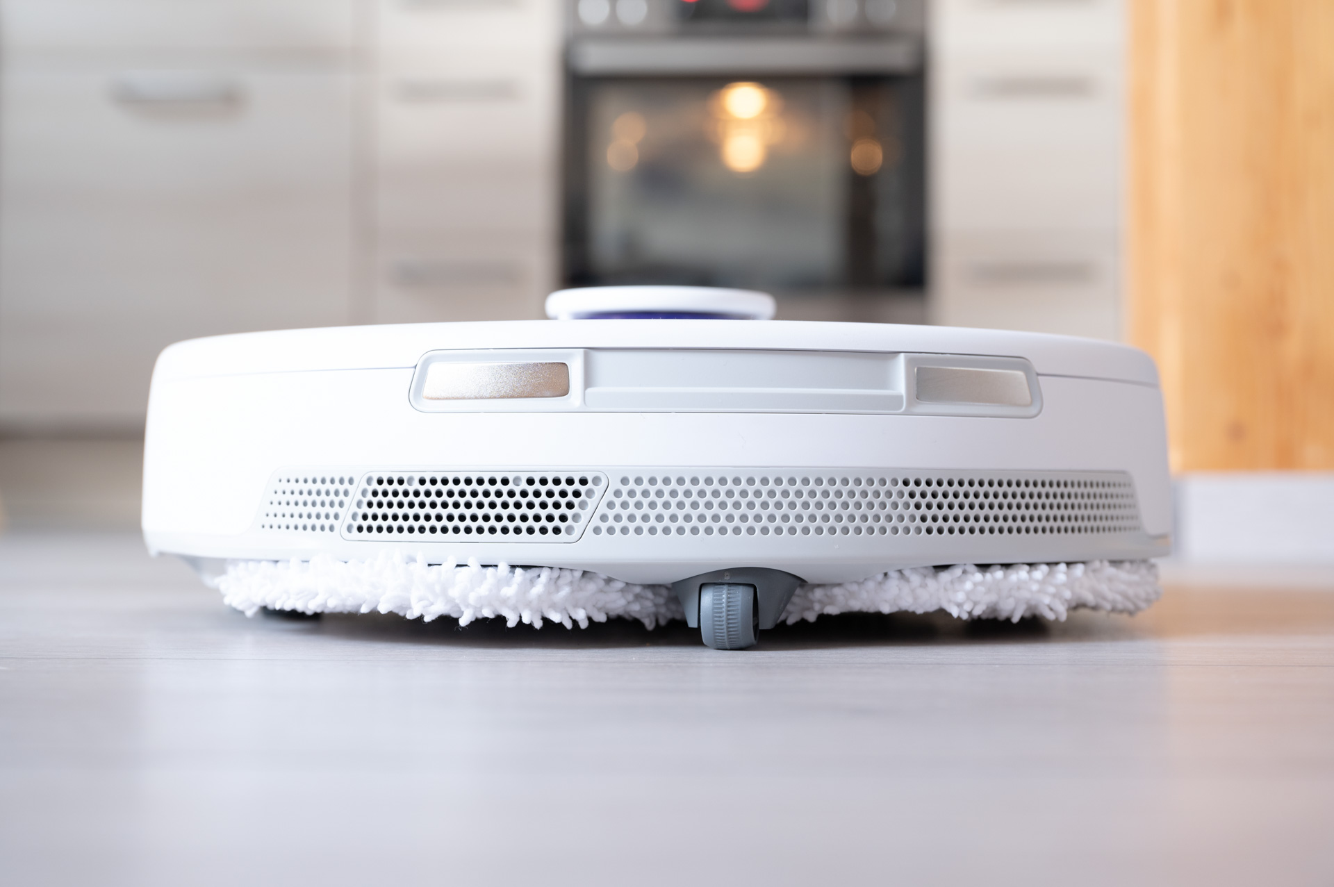 Seine eigentliche Stärke ist das Wischen. Im Test lösten die Dreicks-Pads Kaffeeflecken oder Soßenspritzer meist im ersten Anlauf. Hartnäckigere Fettflecken hingegen verlangen einen zweiten oder dritten Durchgang. Durch seinen ausfahrbaren Wischarm kommt er an sich etwas näher an Fußleisten heran, in sehr engen Winkeln bleibt jedoch manchmal ein schmaler Streifen zurück. An Teppichen hebt er seine Mopps schließlich um bis zu 12 mm an, sodass diese trocken bleiben.