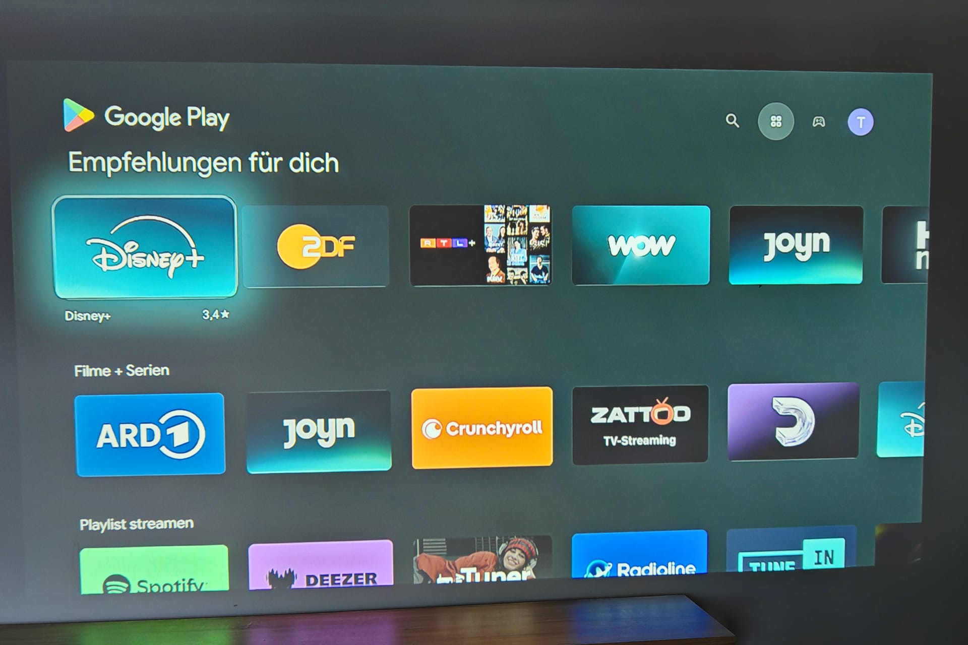 Ein großer Vorteil des PV800 PRO ist das integrierte Google TV. Das ist im Alltag relevanter, als es zunächst klingt. Viele Projektoren nutzen Android-Varianten, die zwar Apps erlauben, aber bei DRM (Widevine L1), Netflix-Kompatibilität oder Bedienlogik schwächeln. Mit Google TV als Plattform wird die Bedienung konsistenter, die App-Auswahl größer und das System liegt deutlich näher am "TV-Alltag".