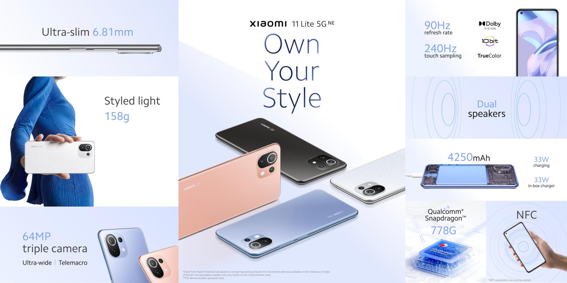 Ein schlankes und auffälliges Design trifft auf eine solide Mittelklasse-Ausstattung. Mit einer Dicke von nur 6,81 Millimetern ist das Xiaomi 11 Lite 5G NE ultradünn. Das Gewicht von gerade einmal 158 Gramm macht es zudem ultraleicht.